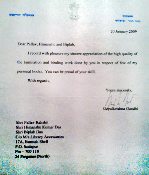 >> Acknowledgement from West Bengal Governor |